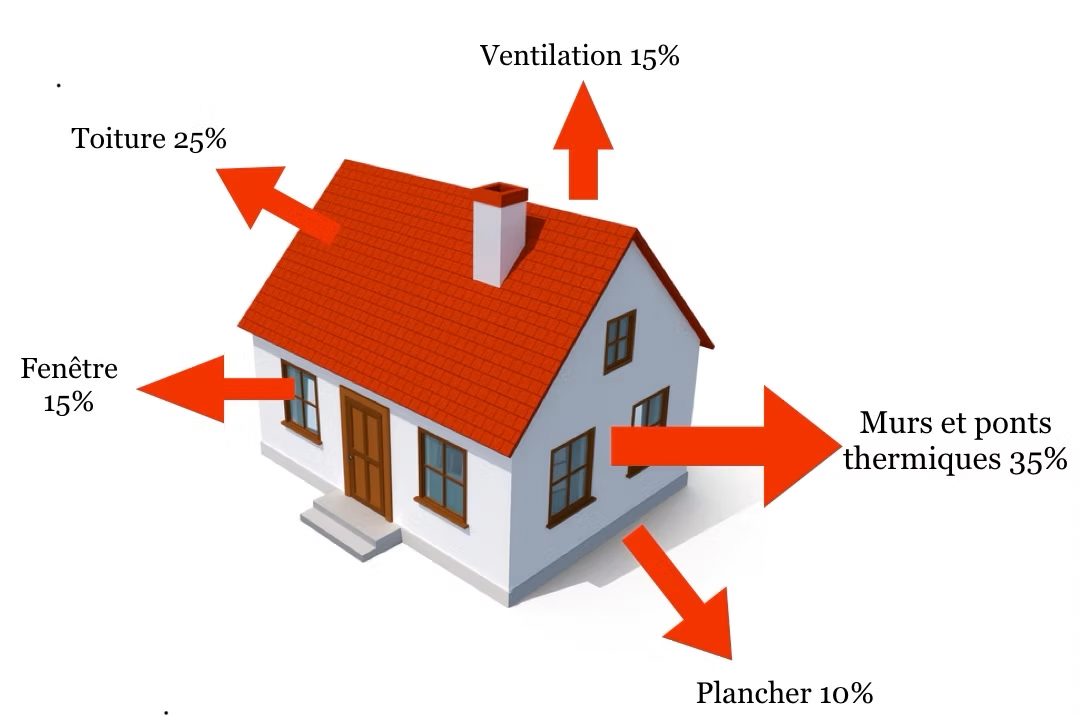 Répartition des Pertes de Chaleur en maison individuelle